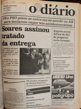 (...) Parece enfim completada a distribuição dos "orgãos de informação" pelos candidatos do sistema: a Presidência da RTP e a Direcção dos respectivos serviços de informação, ficaram no PS, que é o mesmo que dizer no Soares; a Direcção do "Diário de Notícias" está com Zenha; com Zenha está o "Jornal", o "Tal e Qual" e o "Diário"; o "Diabo" passou-se para Freitas e de Freitas é "O Primeiro de Janeiro", tal como o "Semanário", este, aliás, "suplemento" ou "complemento" político moderado de "O Diabo"; e assim sucessivamente.