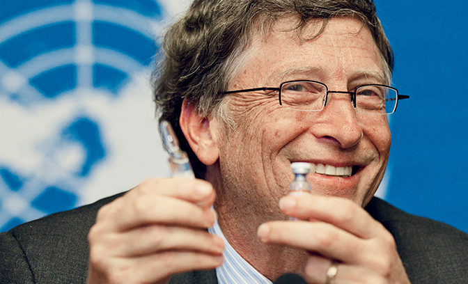 | Bill e Melinda Gates com o secretário-geral das Nações Unidas, Ban Ki-moon. |