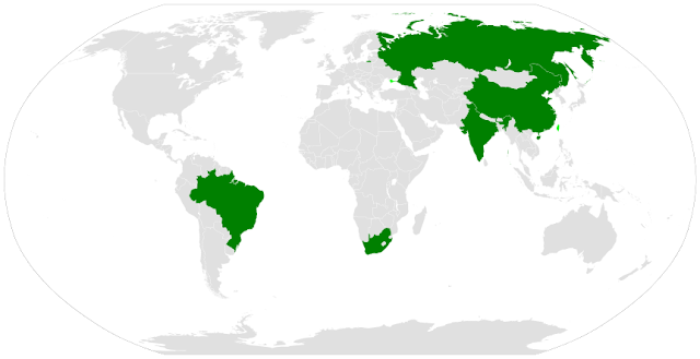 Líderes do BRICS em 2016: Temer, Modi, Xi, Putin e Zuma.