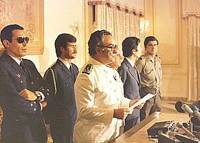 | A cambada do 25 de Abril: Costa Gomes acompanhado de Vasco Gonçalves, Pinheiro de Azevedo e Rosa Coutinho, entre outros. |