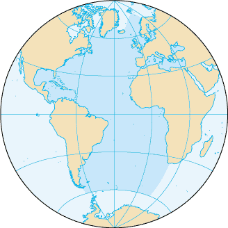 O Oceano Atlântico, dividido em Norte e Sul pela linha do Equador |