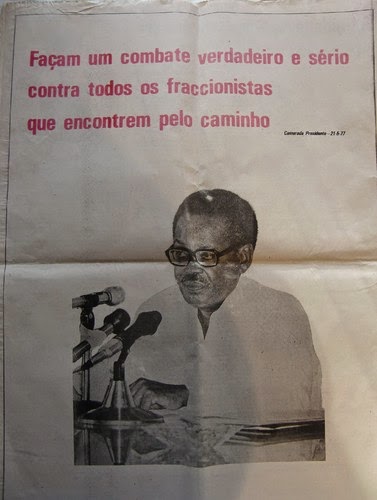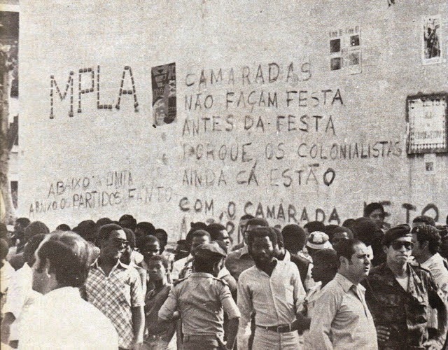 «Em Dezembro, o PCP, numa mensagem ao I Congresso do MPLA, afirma a sua disposição de combater firmemente quaisquer conspirações anti-angolanas que se desenvolvam a partir do território português e as campanhas de mentiras e calúnias dos inimigos do MPLA e da República Popular de Angola. E Sérgio Vilarigues [secretário do PCP para as relações externas], numa declaração ao Congresso, afirma que o PCP aprecia altamente as profundas transformações realizadas na República Popular de Angola nos dois anos percorridos desde a proclamação da independência nacional.