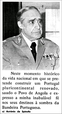O general Spínola foi atirado para a liderança na tarde do golpe. Num gesto de solidariedade e desespero, Marcelo Caetano entendeu chamá-lo, depois de paralisar uma eventual resistência. Para os conspiradores do MFA, Spínola era útil e conveniente: era preciso que a descolonização fosse anunciada, não por um obscuro major ou capitão, mas por alguém que se tivesse distinguido no terreno e cujo patriotismo e coragem fossem conhecidos. Só um símbolo da defesa do Império poderia anunciar ao país o seu abandono. Spínola cumpria os requisitos, como De Gaulle com a Argélia.