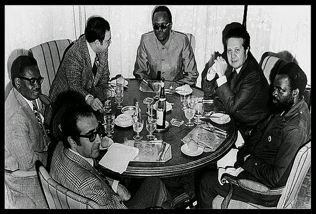 (8) Numa outra passagem, é possível ver como Henry Kissinger sempre se moveu ao serviço de interesses financeiros internacionais: «Entretanto, Kissinger autoriza a Gulf Oil a encetar conversações para o recomeço da produção de petróleo. O Governo angolano levanta num banco suíço 125 milhões de dólares ali colocados pela Gulf Oil. E a produção petrolífera recomeça em Maio de 1976. Já em 25 de Março a Boeing fornecera dois 737 ao Governo de Angola, montando nessa Primavera equipamentos de controlo de tráfego aéreo. Em finais de 1976, Kissinger parece ter alterado a pressão sobre o MPLA e levado à retirada dos sul-africanos» (ibidem, p. 169).